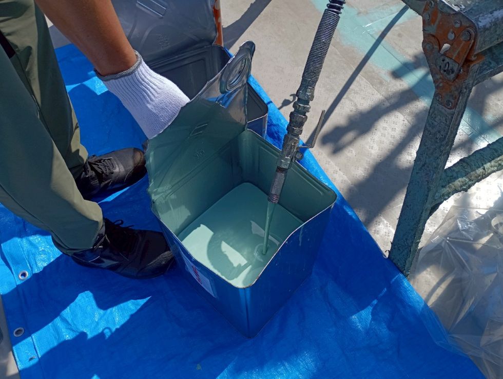 圧送工程:連続2日間で終了。当日は希釈剤なしで施工(既存ジョイント処理、プライマー、トップコート工程は別途)